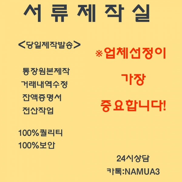 계좌수정,잔고수정,납세증명서제작,각종영수증제작,재직증명서제작,성적증명서제작